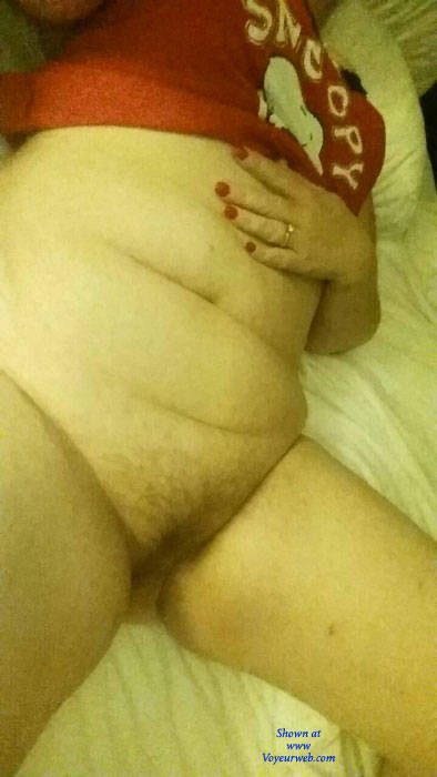 Very seducing naked wife! I like her big tits and shaved pussy!