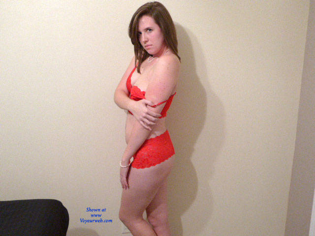 Sexy red undies! I like her yummy ass, tits and shaved pussy!