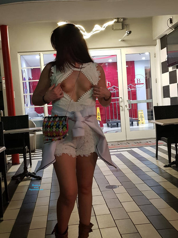 Brunette Public Exhibitionist Flashing Outdoors Public Place Amateur